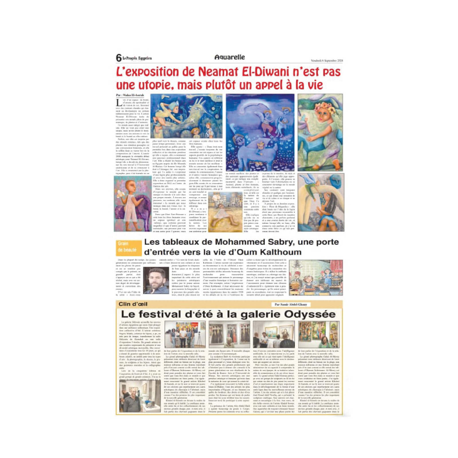 Le Progrès Egyptien covered the Odyssey Summer Art Festival, highlighting the unique artworks and their details, as well as the prominent artists who participated in the festival. We are delighted at Odyssey that the festival has created a unique buzz, making it the center of attention for the audience.